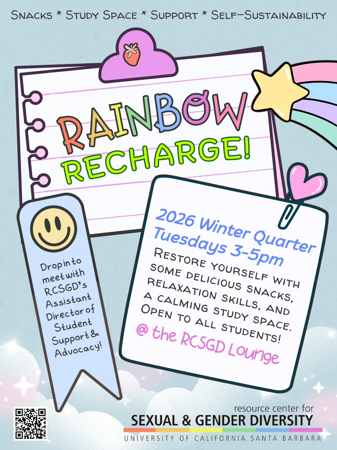 Drop in to meet with RCSGD's Assistant Director of Student Support & Advocacy! Restore yourself with some delicious snacks, relaxation skills, and a calming study space open to all students!